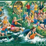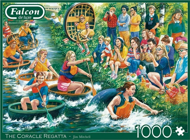 Ponorte sa do atmosféry britských vodných krajín s puzzle FALCON „Koraklová regata“. Tradičné ľahké člny coracle (slovensky korakl) dodávajú motívu jedinečný historický nádych. Vďaka 1000 starostlivo vyrezaným dielikom je skladanie plynulé a uspokojivé – ideálne pre pokročilých aj trpezlivých začiatočníkov.