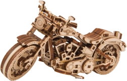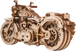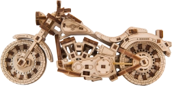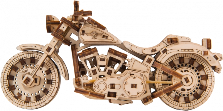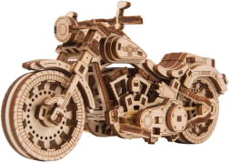 Drevená mechanická stavebnica najúžasnejšej motorky Cruiser V-Twin na vás čaká! Vďaka jedinečnému dizajnu a prekvapivým detailom tohto modelu bude vaše trávenie času plné zábavy a skvelých emócií. Môžete používať riadenie pomocou predného kolesa. Motorka so zotrvačníkovým mechanizmom dokáže prejsť až 1 meter. Nadchnú vás pohyblivé valce pri otáčaní zadného kolesa a tiež tlmiče na prednej vidlici motocykla. Cruiser V-Twin je vybavený brzdovými kotúčmi a pogumovanými kolesami.