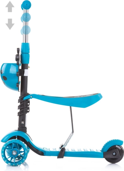 Jednoduché prepínanie medzi režimom s vodiacou tyčou, odrážadlom so sedadlom a klasickou kolobežkou. Ideálne na postupné získavanie rovnováhy a istoty.
