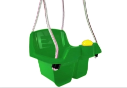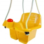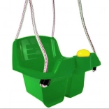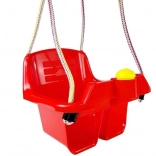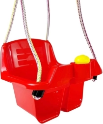 Bezpečná vedierková hojdačka pre najmenších ponúka hlboké sedadlo, vysoké operadlo a prednú zábranu pre stabilné sedenie. Odolný plast s pevným závesným lanom je vhodný do interiéru aj na záhradu. Súčasťou je aj zábavné tlačidlo/klaksón, ktoré poteší malé deti.