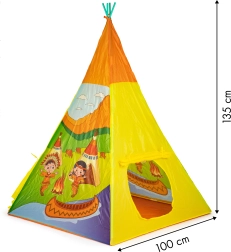 Objavte kúzelný priestor na hry, skrývačky a príbehy indiánov a kovbojov. Farebné potlače, príjemné textílie a praktický vchod podporujú kreatívnu hru aj oddych. Vďaka rozmerom 100 × 100 × 135 cm si deti užijú veľa miesta pre hračky aj kamarátov.