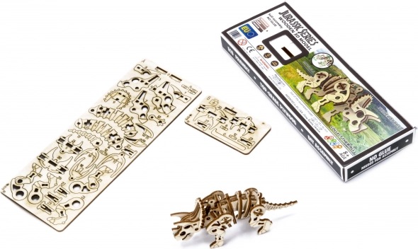 Drevená mechanická stavebnica zo série Jurský Triceratops je určená pre milovníkov pravekých tvorov. Po zostavení model ožije vo vašich rukách, má pohyblivú hlavu a končatiny. Vďaka jedinečnému dizajnu a prekvapivým detailom tohto modelu bude vaše skladanie plné zábavy. 3D puzzle WOODEN CITY Jurassic Series Triceratops je výborným darčekom pre každého milovníka dinosaurov. Náročnosť: 2 z 5 (podľa rozdelenia Wooden City) Orientačný čas na zostavenie: 1 hodina Mierka: 1:70 Drevené 3D puzzle WOODEN CITY sú detailne prepracované funkčné mechanické modely, ktoré sa skladajú bez lepidla alebo náradia. Sú vyrobené z ekologických drevených materiálov – kvalitnej brezovej preglejky. S mechanickými drevenými puzzle WOODEN CITY zažijete hodiny zábavy pri skladaní a spoznáte prevody, gumičkové motory, ozubené kolieska a ďalšie súčiastky z bezprostrednej blízkosti.