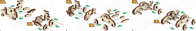 Vďaka kvalitnej brezovej preglejke a skladaniu bez lepidla či náradia je montáž týchto modelov nielen ekologická, ale aj prístupná pre každého. Stačí iba 10 minút na model a užijete si zábavu pri spoznávaní mechanických súčiastok, ako sú prevody, gumičkové motory a ozubené kolieska.
