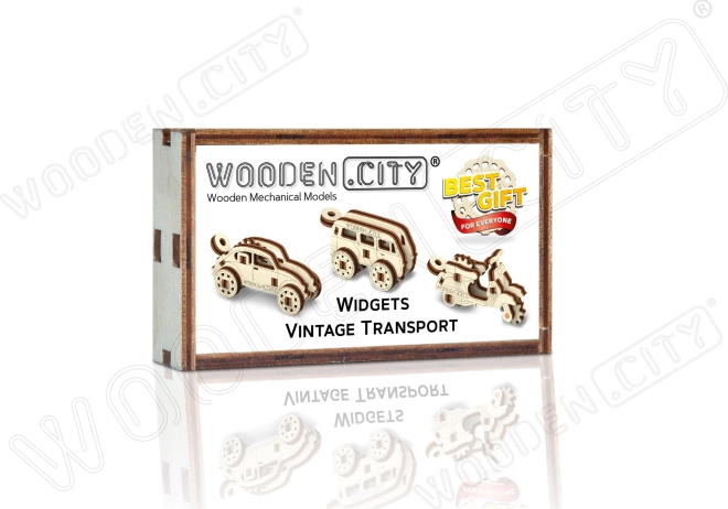 Vytvorte si vlastný kúsok histórie s drevenými 3D puzzle WOODEN CITY. Táto sada Widgets prináša tri miniatúry dopravných prostriedkov, ktoré možno použiť ako prívesky alebo dekoráciu. Každý model je unikát, ktorý vás zabaví a očarí svojimi prepracovanými detailmi a funkcionalitou.