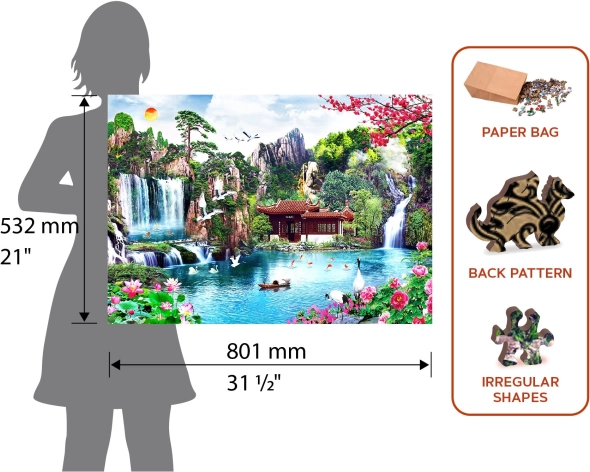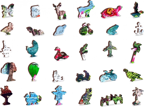 Každý z 2000 dielikov je vyrezaný laserom a mnoho z nich má tvar zvierat, stavieb či ďalších objektov, vďaka čomu sú jednotlivé dieliky jedinečné a rozvíjajú detskú fantáziu a tvorivosť. Drevená skladačka je vhodná pre všetky generácie a skvele poslúži ako darček.