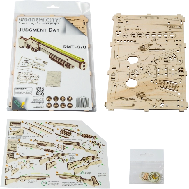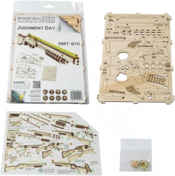 Postavte si autentický model zbrane, ktorý strieľa gumičky a má prepracované detaily ako poistka a zásobník na náboje. Model je možné jednoducho zostaviť vďaka ekologickým dreveným materiálom a nepotrebujete k tomu žiadne lepidlo alebo náradie.