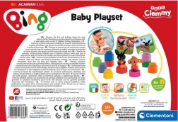 Prepojenie príbehu s obrázkami, rozprávaním a skladaním podporuje detskú predstavivosť, rozvíja zmyslové vnímanie, manuálnu zručnosť a priestorové vnímanie, knižočka z pevného kartónu s Bingom a Sulou (10 x 10 x 1,5 cm) s krúžkom na zavesenie, 2 postavičky: Bing + Sula (možno nasadiť na kocky), 8 mäkkých CLEMMY kociek.