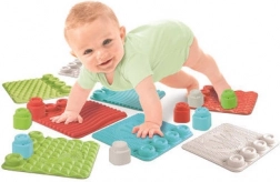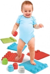 Štyri farebné podložky s odlišnými reliéfmi povzbudzujú deti k skúmaniu dotykom, lozeniu a prvému balansovaniu.