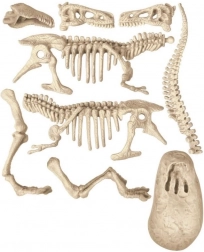 Archeologická sada dáva deťom príležitosť stať sa paleontológom a preskúmať kostru pravekého dinosaura. Pomocou priložených nástrojov opracuj kameň a objav kosti, z ktorých si postavíš svietiacu kostru T-rexa.