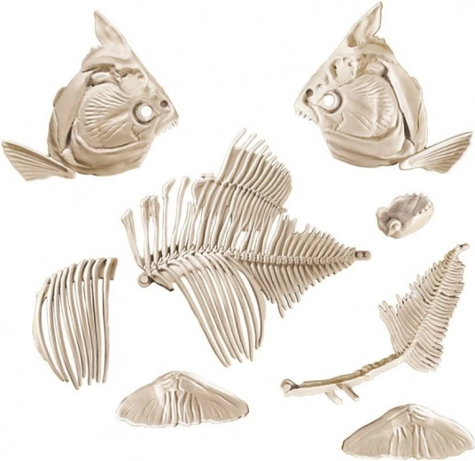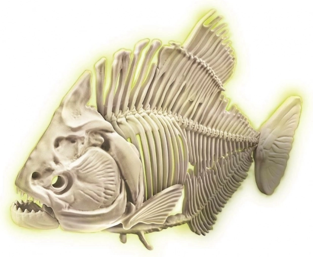Objavujte svet paleontológie krok za krokom. Pomocou kladivka a dlátka opatrne opracujte blok zeminy a odhaľte kosti, z ktorých poskladáte realistickú kostru piranhe. Vďaka špeciálnemu fluorescenčnému materiálu kostra po nasvietení žiarí v tme, čo dodá objavovaniu jedinečnú atmosféru.