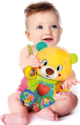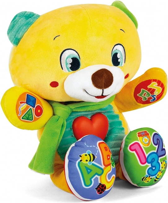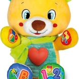 Supermäkký hovoriaci medvedík, ktorý spája učenie a zábavu. Dotykom 5 interaktívnych tlačidiel učí prvé písmená, čísla, tvary a farby. Svietiace srdiečko reaguje pri rozprávaní, pesničkách a riekankách. Hračka hovorí po česky, po slovensky a po maďarsky (jazyk sa nastavuje pri batériách).