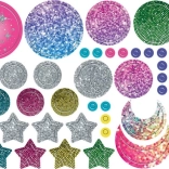 Exkluzívna súprava na výrobu náramkov a náhrdelníkov s fantastickými príveskami Crazy Stars a Crazy Moon, ktoré SVIETIA V TME! Objavte rôzne kombinácie na tvorbu šperkov s trblietavým efektom! Súprava obsahuje: farebné plastové prívesky v tvare mesiaca a hviezd, prívesky svietiace v tme, prívesky so strieborným efektom, kovové retiazky, háčiky a kovové krúžky, nálepky s trblietkami, krabičku na príslušenstvo, obrázkový návod s doplňujúcimi textami v českom jazyku.