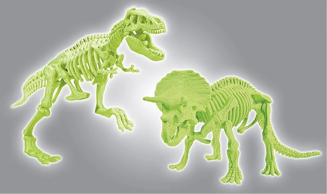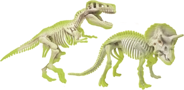 Fluorescenčné diely kostry absorbujú denné svetlo a v tme žiaria. Hotové modely T‑Rexa a Triceratopsa sú efektnou dekoráciou aj vzdelávacou pomôckou.