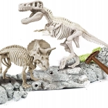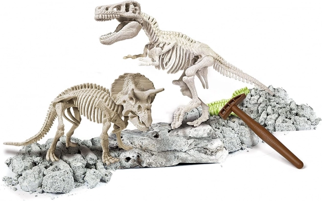 Táto vzdelávacia sada z radu Science & Play prináša autentický zážitok z paleontologického výskumu. V bloku „horniny“ nájdeš diely dvoch detailných kostier, ktoré pomocou kladivka a dlátka opatrne uvoľníš a následne zložíš do impozantných modelov. Špeciálny fluorescenčný materiál pohlcuje denné svetlo a potom žiari v tme, čo zvyšuje efekt wow a motivuje k ďalšiemu skúmaniu.