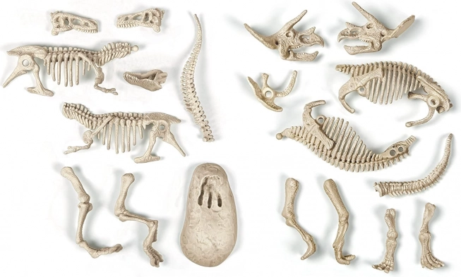 Použi kladivko a dlátko, opatrne vykop „fosílie“ z bloku a zostav detailnú kostru. Skvelý spôsob, ako trénovať zručnosť a trpezlivosť.