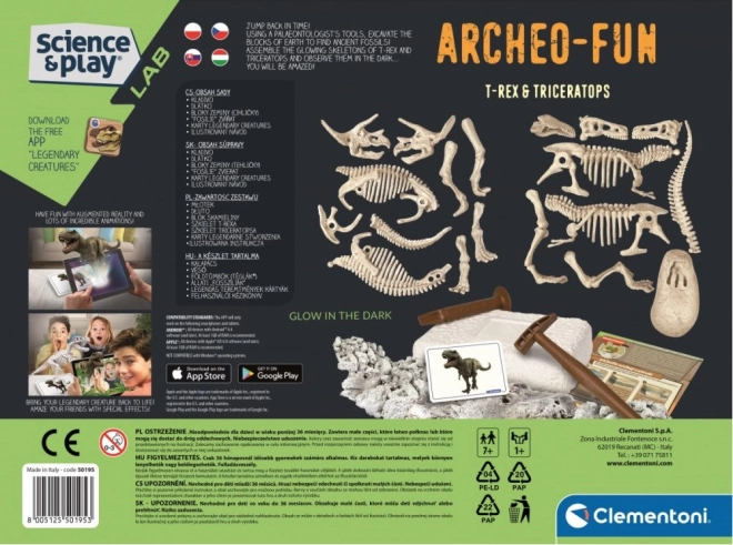 Súčasťou je ilustrovaný návod a vzdelávacie karty s faktami o dinosauroch a fosíliách. A vďaka bezplatnej aplikácii Legendary Creatures s rozšírenou realitou sa kostry premenia na interaktívne 3D modely – ideálna kombinácia učenia a hry. Skvelé pre deti od 7 rokov, ktoré milujú dinosaury, experimenty a objavovanie.