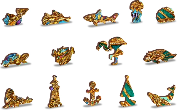 Farebný podmorský dizajn so špeciálnymi dielikmi v tvare morských živočíchov a rastlín dodáva skladaniu originalitu aj radosť z objavovania.