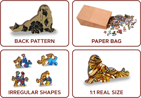 Každý dielik je vyrezaný z pevnej HDF dosky s hrúbkou 3–4 mm, čo zaručuje dlhú životnosť a pohodlné skladanie bez triesok. V balení nájdete aj samostatnú predlohu pre ľahšiu orientáciu. Udržateľný prístup značky WOODEN CITY znamená 100 % eko balenie bez plastov – puzzle je uložené v papierovom vrecúšku a krabičke.
