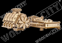 Model je vyrobený z kvalitnej brezovej preglejky a skladá sa bez lepidla či špeciálneho náradia. Pre optimálnu funkciu sa odporúča navoskovať nápravy a ozubené kolieska. Náročnosť je stredná (3/5), takže je vhodný pre trpezlivých začiatočníkov aj pokročilých modelárov.