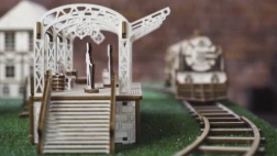 Stanica ožíva vďaka laserom vyrezaným figúrkam cestujúcich, hodinám, lavičkám a ozdobným oblúkom. Skvelý display model pre milovníkov železníc.