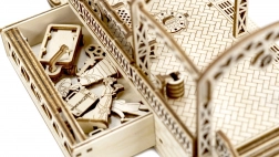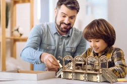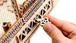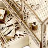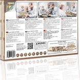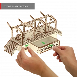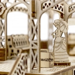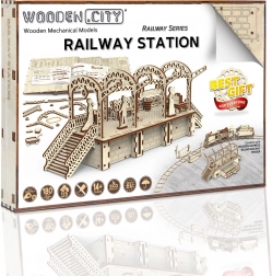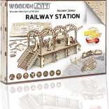 Drevené 3D puzzle WOODEN CITY železničná stanica prináša autentickú atmosféru nádražia s dekoratívnymi oblúkmi, lavičkami a figúrkami cestujúcich. Skladanie prebieha bez lepidla či náradia, jednotlivé diely presne zapadajú a výsledný model je nielen dekoratívny, ale aj funkčný – drobnosti ľahko ukryjete do tajnej priehradky.