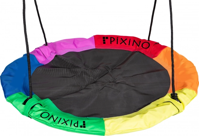 Zažite nezabudnuteľné chvíle plné zábavy a pohody s hojdačkou Pixino bocianie hniezdo. Tento hojdací kruh je navrhnutý tak, aby poskytol deťom maximálnu bezpečnosť a zároveň ich zaujal svojím pestrým dizajnom. Sedadlo je vyrobené z kvalitného polyesteru, ktorý odoláva akémukoľvek počasiu.