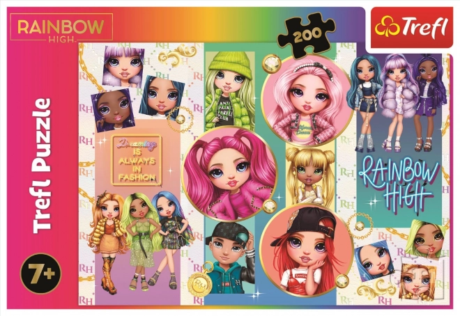 Objavte zábavu s puzzle RAINBOW HIGH s motívom priateľstva z obľúbeného seriálu. Sada obsahuje 200 dielikov a po zostavení vytvorí obrázok s rozmermi 48 × 34 cm. Vyniká živými farbami, kalandrovaným papierom znižujúcim odlesky a ekologickými materiálmi pre bezpečné a príjemné skladanie.