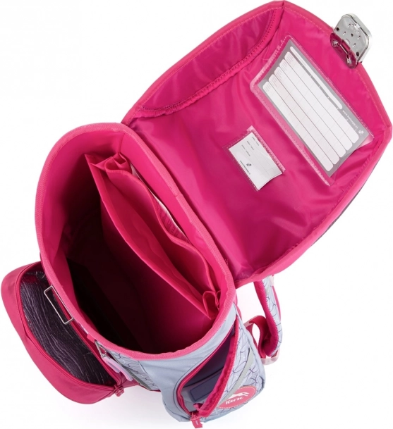 Hlavná komora je dostatočne priestranná pre všetky školské potreby do 1. a 2. triedy, predné vrecko je ideálne na desiatu. Pevné dno chráni obsah a zvyšuje stabilitu proti prevrhnutiu. Bezpečnostná pracka uľahčuje zapínanie a reflexné prvky zvyšujú viditeľnosť dieťaťa za šera aj za tmy.