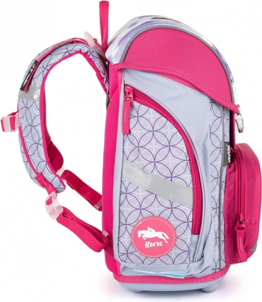 Táto školská aktovka z radu Premium s obľúbeným motívom koňa je navrhnutá pre maximálny komfort a správne držanie tela malých školákov. Anatomicky tvarovaný chrbát s vnútornou výstuhou drží stály tvar a spolu s priedušným polstrovaním a širokými mäkčenými popruhmi zabezpečujú pohodlné a rovnomerné rozloženie záťaže.