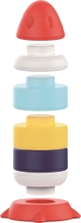 Stolček podporuje učenie formou hry – deti sa učia rozlišovať tvary, farby a zvuky, trénujú úchop a koordináciu ruka-oko. Uprostred čaká zábavná funkcia: po zatiahnutí za gombík sa v kupole roztočí mačička. Nechýbajú ozubené kolieska, hrkajúce koráliky a prvky na stavanie veže. Celý stolček možno ľahko využiť aj ako praktický úložný box.