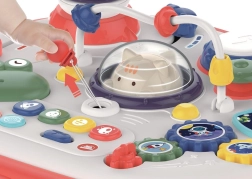 Zábavný interaktívny stolček pre najmenších, ktorý rozvíja zmyslové vnímanie, jemnú motoriku a kreativitu. Ponúka svetelné a zvukové efekty, dvojstupňové nastavenie hlasitosti, otočný panel so stranou pre stavebnice typu lego a množstvo tlačidiel, ozubených koliesok a herných prvkov. Panel možno vybrať, stolček poslúži aj ako úložný box na hračky.