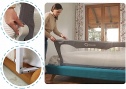 Jednoduchá inštalácia pod matrac s možnosťou pevného prišroubovania. Pásy SecureBelt poskytujú protizáťaž a držia zábranu na mieste.