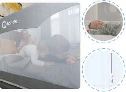 Montáž je intuitívna: ramená sa zasunú medzi rošt a matrac, na trvalé uchytenie možno využiť priložené skrutky a držiaky. Systém Standsafe bráni nechcenému sklopeniu a bezpečnostné pásy SecureBelt poskytujú protitah pri tlaku dieťaťa na sieťovinu. Ľahký, no odolný hliníkový rám odolá vysokému zaťaženiu a nedeformuje sa.