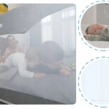 Zábrana HANNA patrí medzi najvyššie na trhu, takže pasuje aj k veľmi vysokým matracom. Priedušná sieťovina je šetrná k detskej pokožke, zabezpečuje optimálne prúdenie vzduchu a umožňuje rodičom mať dieťa stále na očiach. Mechanizmus skladania o 180° dovolí zábranu rýchlo sklopiť k rámu postele – zostáva nenápadná a pripravená na ďalšie použitie.
