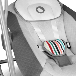 Bezpečnosť zaisťuje pevný oceľový rám a 5-bodové pásy, komfort zas mäkké odnímateľné polstrovanie s prateľnými časťami a vankúšik pre správnu oporu hlavičky. Praktický časovač, päť úrovní hojdania a napájanie cez USB alebo batérie sa postarajú o maximálnu flexibilitu v každej domácnosti.