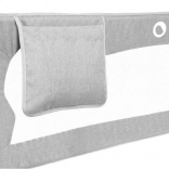 Praktické veľké vrecko pojme drobnosti, ktoré chcete mať poruke. Zábrana sa ľahko inštaluje, v balení nájdete aj bezpečnostné pásy na dodatočné zaistenie. Po zložení sa zmestí pod posteľ alebo do skrine, čo z nej robí skvelého spoločníka aj na cesty.