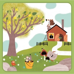 - drevená hracia doska, 20 obrázkových kariet, 5 žetónov so zvieratkami