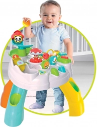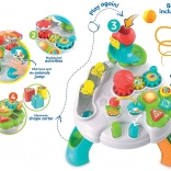 Na tomto stolíku nájdete ozubené kolieska, ktoré otáčajú kolotočom, tlačidlá, ktoré oživia postavičky, a zábavnú guľôčkovú dráhu so šmykľavkami, ktorá končí v nohách stola. Tento stôl nie je len zábavou, ale aj nástrojom na rozvoj dôležitých zručností u detí.