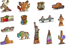 30 unikátne tvarovaných dielikov predstavuje známe stavby, zvieratá alebo predmety, ktoré pridávajú puzzle jedinečnosť a obtiažnosť.