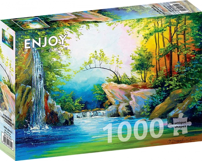 Užite si relax pri krásnej prírodnej scéne s puzzle ENJOY s 1000 dielikmi. Obrázok zachytáva malebný les pri vodopáde a ponúka ideálnu kombináciu oddychu a výzvy. S rozmerom zloženého obrázka cca 68 × 48 cm je skvelé na domácu dekoráciu aj na tréning sústredenia a trpezlivosti. Vďaka kvalitnému spracovaniu a presným výsekom poskytuje puzzle plynulé skladanie, živé farby a detailný motív.