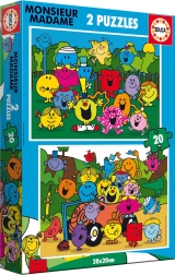 Dvojbalenie kvalitných detských puzzle od značky EDUCA s motívmi postavičiek Monsieur Madame. Každé puzzle má 20 dielikov a po zostavení meria približne 28 × 20 cm – ideálna veľkosť pre malé ruky a prvé skladanie.