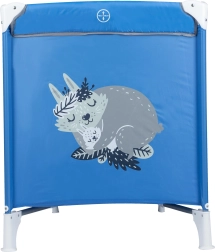 Súčasťou je mäkký matrac zabezpečujúci pohodlné ležanie a prepravná taška, ktorá postieľku chráni a uľahčuje jej transport. Modré prevedenie s motívom zajačika pôsobí hravo a zároveň vkusne zapadne do každého interiéru.