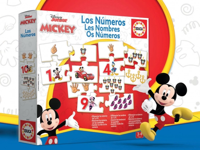 Zábavné a vzdelávacie puzzle pre najmenších s motívmi z obľúbeného seriálu MICKEY A PRIATELIA. Sada obsahuje desať samostatných obrázkov po štyroch dielikoch, ktoré deťom pomáhajú učiť sa číslam od 1 do 10. Podporuje koordináciu oko–ruka, logické uvažovanie a rozpoznávanie farieb a predmetov.