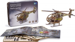 Drevená mechanická stavebnica vojenského vrtuľníka na vás čaká! Vďaka jedinečnému dizajnu a prekvapivým detailom tohto modelu bude vaše trávenie času plné zábavy a skvelých emócií. Vlastnosti modelu: - výrazné farebné prvky vďaka vysoko presnej UV tlači, - drevená škatuľka slúži ako podstavec, - zberateľská edícia. 3D puzzle WOODEN CITY Helicopter bude najlepším darčekom pre každého milovníka letectva. Obtiažnosť: stredná 3 z 5 Orientačný čas na zloženie: 4 hodiny Mierka: 1:30 Drevené 3D puzzle WOODEN CITY sú detailne prepracované funkčné mechanické modely, ktoré sa skladajú bez lepidla alebo náradia. Sú vyrobené z ekologických drevených materiálov – kvalitnej brezovej preglejky. S mechanickými drevenými puzzle WOODEN CITY zažijete hodiny zábavy pri skladaní a spoznáte prevody, gumičkové motory, ozubené kolieska a ďalšie súčiastky z bezprostrednej blízkosti. funkčný mechanický model skladanie bez použitia lepidla alebo náradia kvalitné spracovanie z prírodného materiálu prepracované detaily UPOZORNENIE: Na zostavenie je potrebný odlamovací nôž, nožnice, brúsny papier a vosková sviečka (nie sú súčasťou výrobku). Pre správne fungovanie a bezproblémovú prevádzku je potrebné nápravy a ozubené kolieska navoskovať. Rozmer zloženého puzzle cca 24 x 12 x 30,5 cm