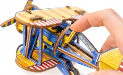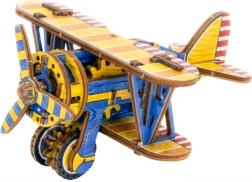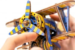 Limitovaná edícia 3D puzzle WOODEN CITY Dvojplošník spája zábavu zo stavania s reálnymi mechanickými funkciami. Vďaka gumenému motoru s naťahovacou vrtuľou a setrvačníku sa model po dokončení skutočne rozbehne. Farebné prvky vytvorené vysoko presnou UV potlačou podčiarkujú retro vzhľad a zberateľský charakter modelu.