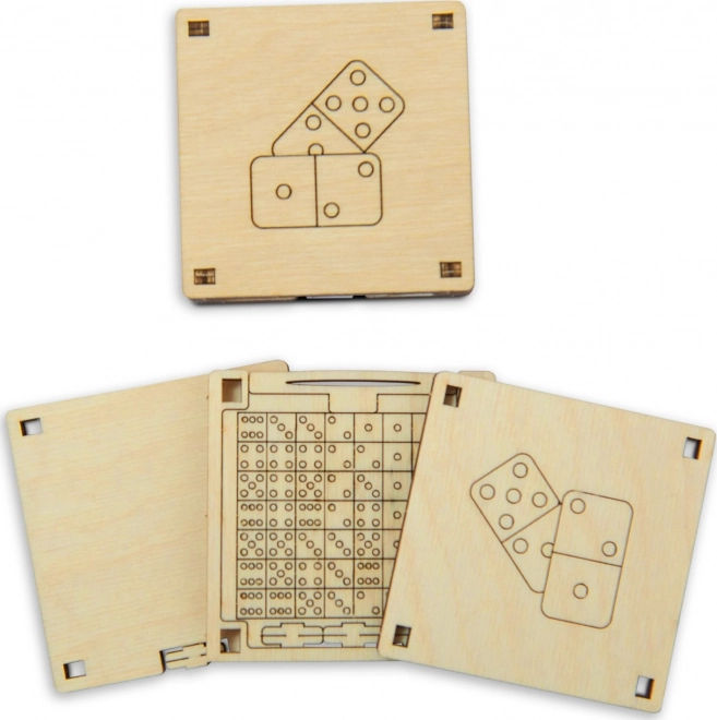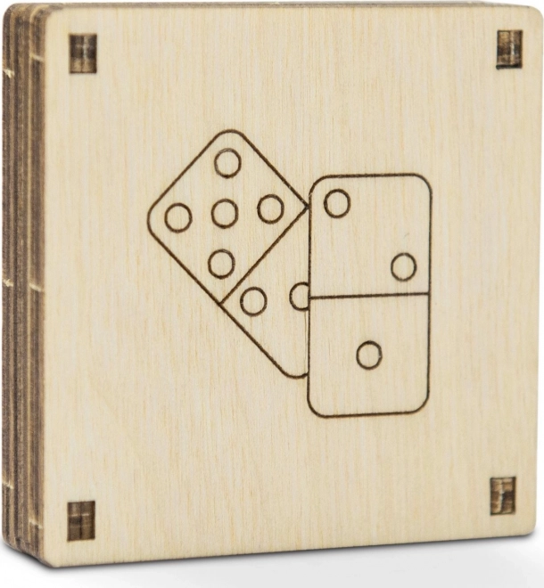 - Drevené 3D puzzle a vrecková hra domino