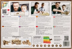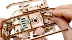 Vyrobený z kvalitnej brezovej preglejky, tento model ponúka ekologickú alternatívu k plastovým hračkám. Nevyžaduje lepidlo ani náradie, čo z neho robí čistý a ekologický projekt. Drevené puzzle obsahujú gumičkové motory a ozubené kolieska, vďaka ktorým model ožíva.