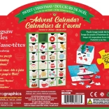 • 24 mini puzzle s motívmi sladkostí – každý deň nový obrázok