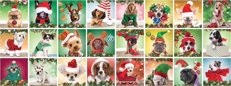 - 24 rôznych motívov vianočných psov – každý deň nové prekvapenie