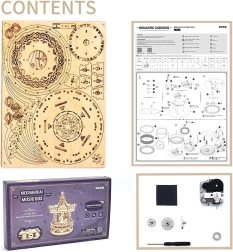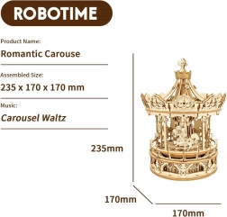 Keď ho zložíte, kolotoč ozdobí vašu poličku a jeho detailné spracovanie vás nadchne. Pre príjemné chvíle pri jeho skladaní poslúži romantická melódia, ktorú si môžete prehrať vďaka kvalitnému 18 tónovému strojčeku vyrobenému z japonských komponentov.